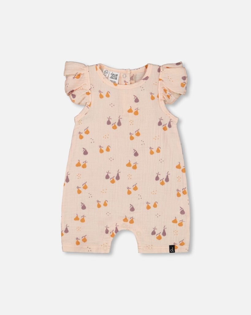Organic Cotton Pointelle Romper Printed White And Pink Flowers