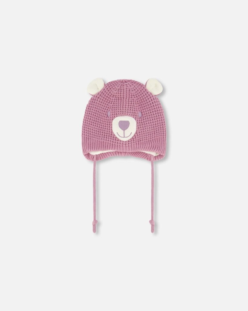 Hooded Knit Cardigan Dusty Pink With Unicorn Intarsia