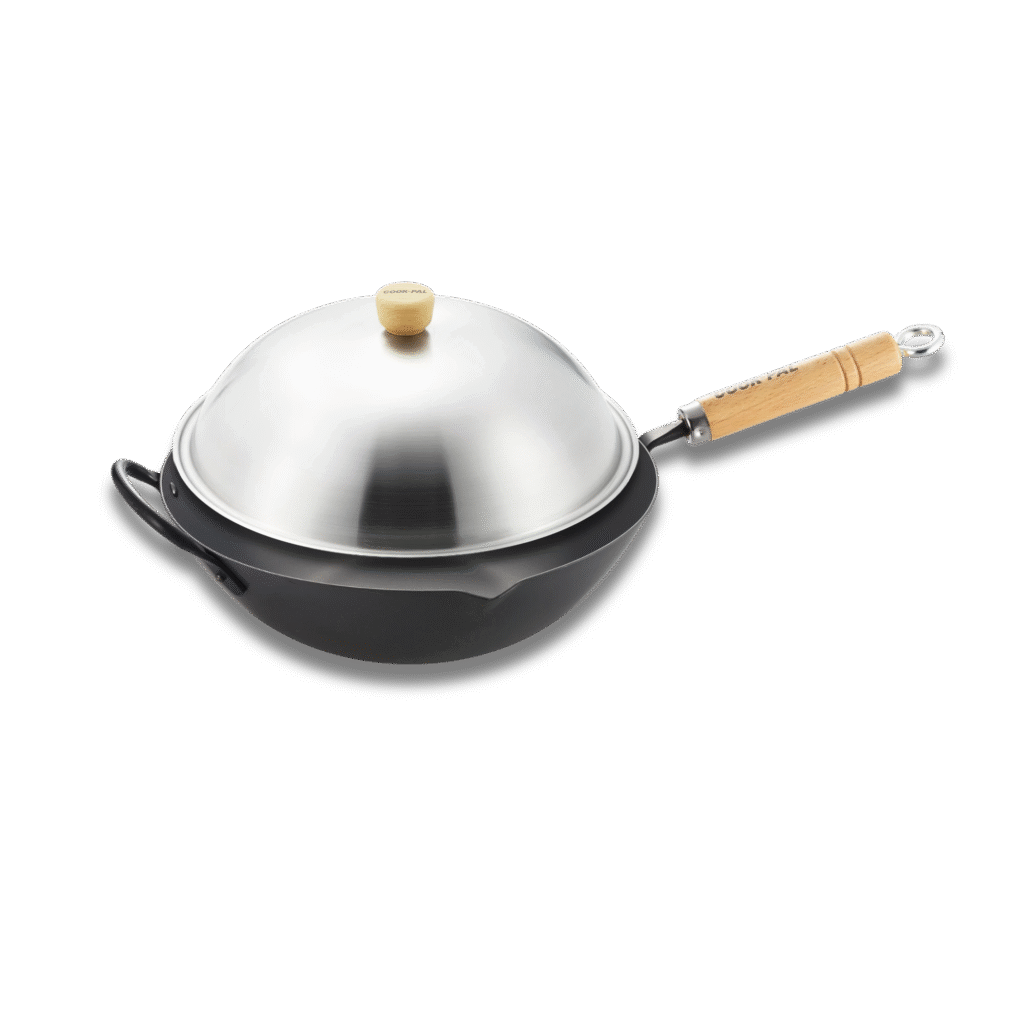 Yoshikawa 36cm Carbon Steel Wok with Stainless Steel Lid – Made in Japan