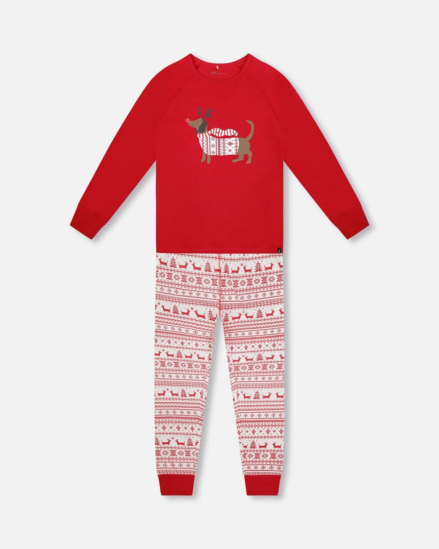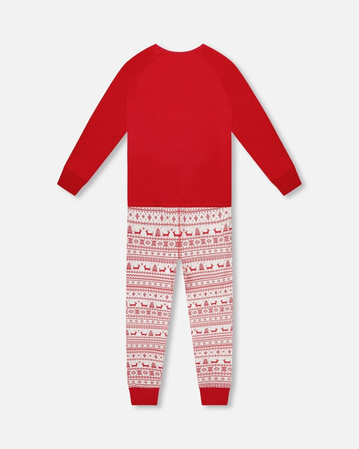 Adult Women Organic Cotton Two-Piece Pajamas Red And White Fairisle