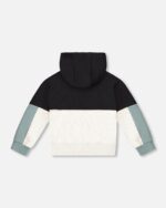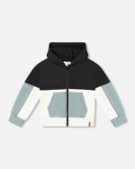 French Terry Color Block Full Zip Hoodie Cardigan Sweatshirt Black, Teal And Shimmer