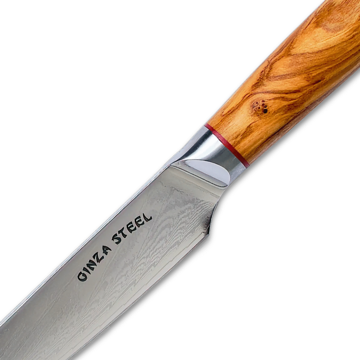 Ginza Steel MIA 12 Utility Knife 5” – Damascus AUS10, 67-Layer, Olive Wood Handle