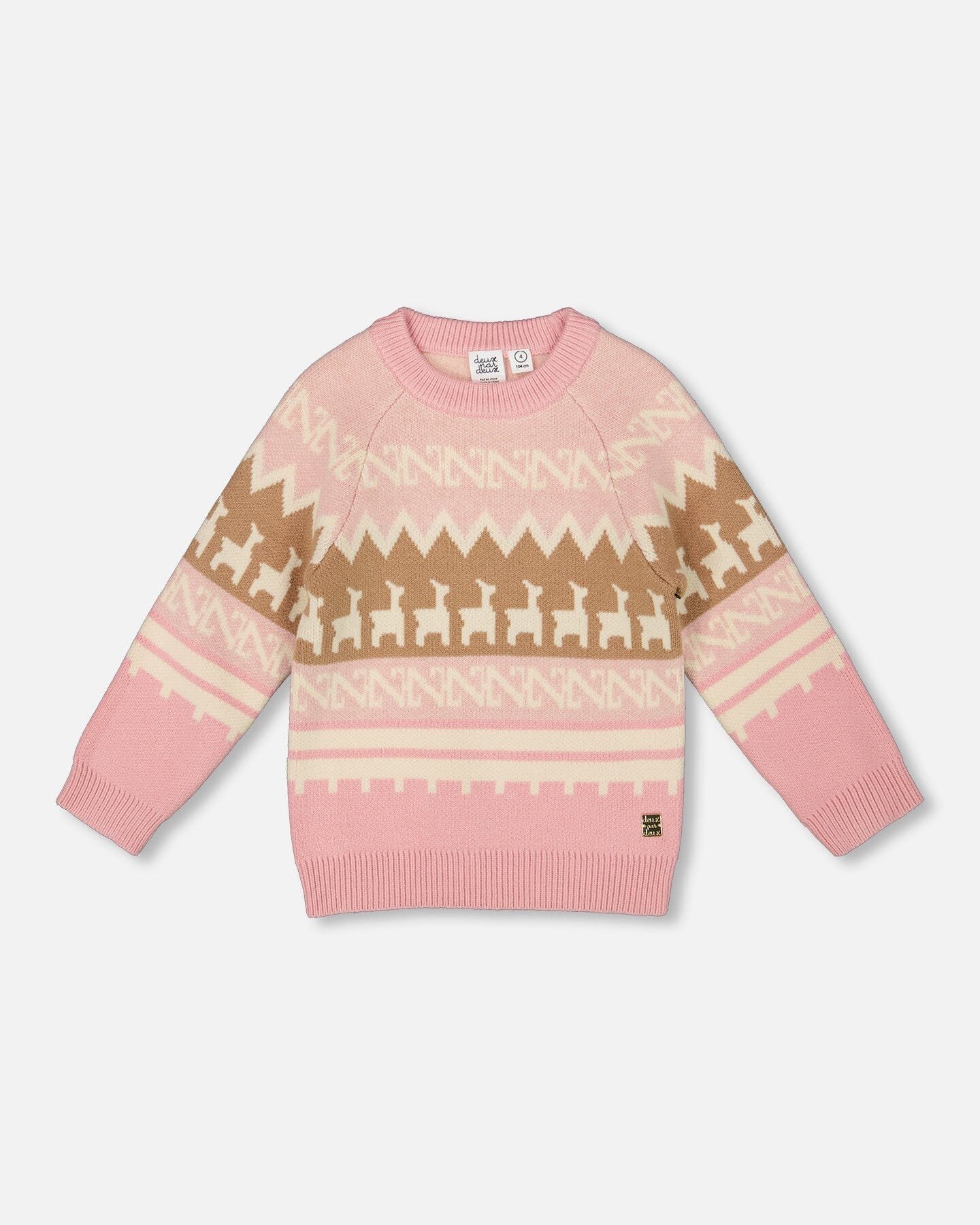 Our Llama Jacquard Sweater Dusty Pink adds fun and flair to every cold-weather outfit. This cozy knit pullover features long raglan sleeves, ribbed trims, and an allover fair isle pattern with adorable llamas worked in soft intarsia. Crafted in a warm, stretchy knit blend, it’s perfect for mixing and matching with any skirt, pants, or leggings this season.