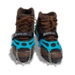 Wide Compatibility: These slip-on crampons traction cleats are suitable for hiking shoes, training shoes, sneakers, and a wide range of footwear. The hinged front plate flexes with the sole so you can move comfortably while helping prevent you from slipping
